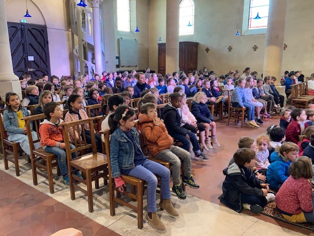 Le 21 avril 2022, nous avons célébré la joie de Pâques par une journée sans cartable lors de laquelle nous avons assisté à une jolie célébration animée par le Père Mathieu à l'Eglise Saint Martin de Louveciennes ; nous avons ensuite fait des jeux de sociétés en mélangeant les classes puis l'après-midi place au carnaval et à un délicieux goûter de crêpes. Quelle belle journée !