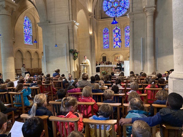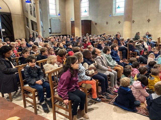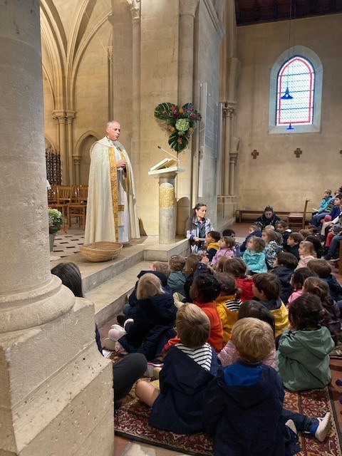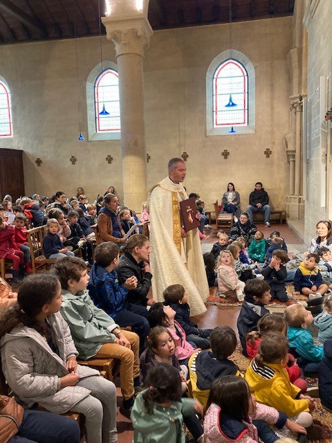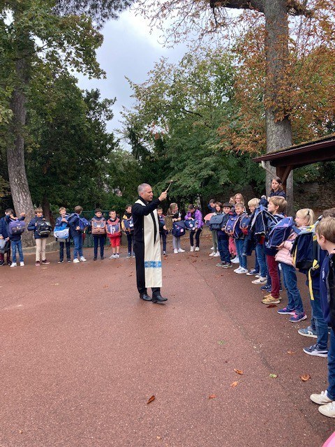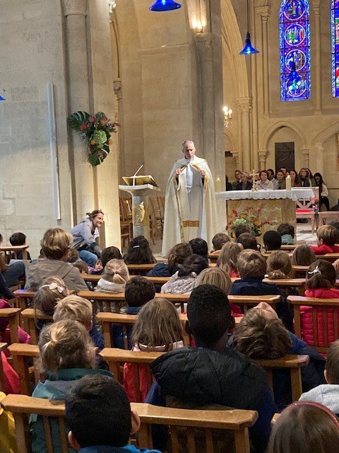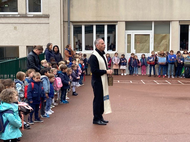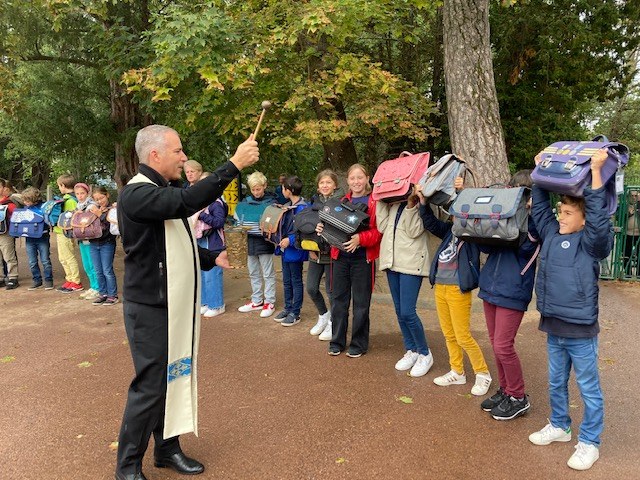 Samedi 22 septembre, nous avons vécu une très belle cérémonie de rentrée à l'église Saint Martin de Louveciennes et le Père Mathieu est ensuite venu à l'école pour nous bénir avec nos cartables. Merci Père Mathieu !