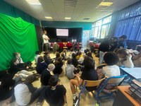 Dans le cadre de notre thème d'année sur les métiers et les talents, les élèves de CM1 et CM2 ont vécu avant les vacances de la Toussaint, une semaine entière d'immersion dans les métiers du cinéma et de l'audiovisuel. Les classes se sont transformées en véritables studios de cinéma et nos apprentis scénaristes, éclairagistes, caméramans, costumiers, comédiens, ingénieurs du sons et de l'image ont occupé l'école pendant une semaine entière pour réaliser deux films qui ont été diffusés aux parents à la fin de la semaine. Un grand merci aux quatre intervenants de FORMAPRIM pour leur investissement sans faille durant toute la semaine ! Les nombreuses compétences développées par les élèves cette semaine auront sans doute suscité des vocations !