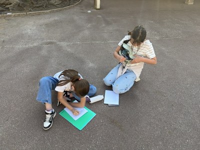 Les séances de production d’écrits ont également trouvé leur place dehors. Inspirés par ce qui nous entourait, nous avons écrit des descriptions, des histoires ou encore des poèmes. Le fait d’être à l’extérieur a stimulé notre imagination : les bruits, les couleurs et les sensations ont nourri nos textes.