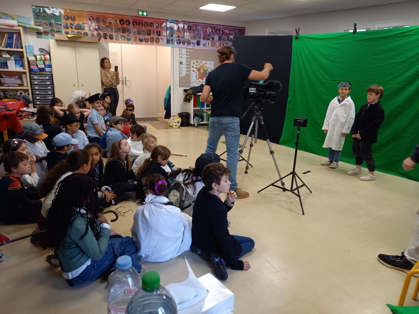 Dans le cadre de notre thème d'année sur les métiers et les talents, les élèves de CM1 et CM2 ont vécu avant les vacances de la Toussaint, une semaine entière d'immersion dans les métiers du cinéma et de l'audiovisuel. Les classes se sont transformées en véritables studios de cinéma et nos apprentis scénaristes, éclairagistes, caméramans, costumiers, comédiens, ingénieurs du sons et de l'image ont occupé l'école pendant une semaine entière pour réaliser deux films qui ont été diffusés aux parents à la fin de la semaine. Un grand merci aux quatre intervenants de FORMAPRIM pour leur investissement sans faille durant toute la semaine ! Les nombreuses compétences développées par les élèves cette semaine auront sans doute suscité des vocations !