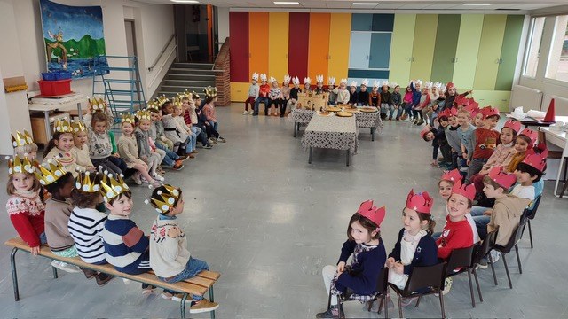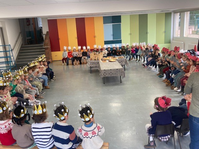 Jeudi 23 janvier, les trois classes de maternelles ont confectionné des galettes des rois dans leur classe. Après avoir été cuites dans les fours de l’école, elles ont été dégustées par l’ensemble de nos jeunes têtes couronnées ! Un merveilleux moment festif !