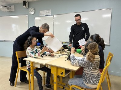 Les enregistrements se sont déroulés en classe les 16 mars et 2 avril, grâce au prêt d’un studio de webradio par le CLEMI de Versailles. Les élèves ont également bénéficié de l’accompagnement de M. Fonsa, parent d’élève et chargé de mission en Éducation aux Médias et à l’Information au sein de l’académie de Versailles.