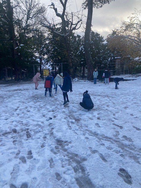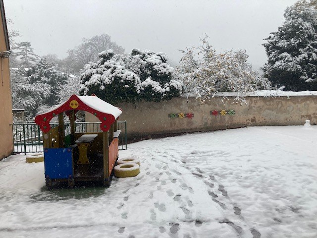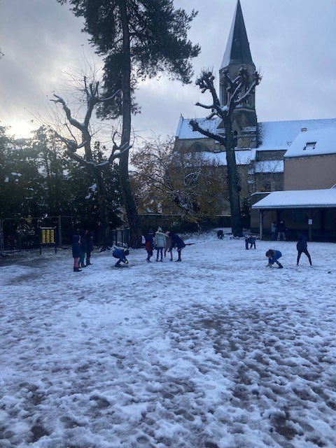 Le jeudi 21 novembre, Sainte Jeanne d'Arc s'est réveillée sous la neige à la plus grande joie des enfants ! Un avant goût de l'hiver.