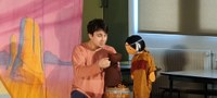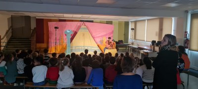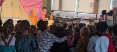 Les maternelles ont eu la joie d’assister à un spectacle animé par la compagnie les 3 chardons. Ils ont ainsi découvert l’histoire de Petite Indienne, dont voici un résumé : “Dans la grande prairie, une petite indienne est triste, car elle n’a pas de nom. Pour la réconforter, Soleil Rouge, le vieil indien, décide de lui raconter les aventures qui lui ont permis de trouver le sien et qu’il a dessinées sur son manteau de fête. Encouragée par les récits de Soleil Rouge, à son tour, la petite indienne va vivre ses propres aventures, en compagnie de l’Oiseau Beau, du Rat Riche et de l’Ours Fort, trois animaux excentriques et loufoques. Pour trouver son nom de petite indienne, écoutera-t-elle leurs conseils farfelus ou choisira t-elle de suivre son intuition, en accord avec sa personnalité ?